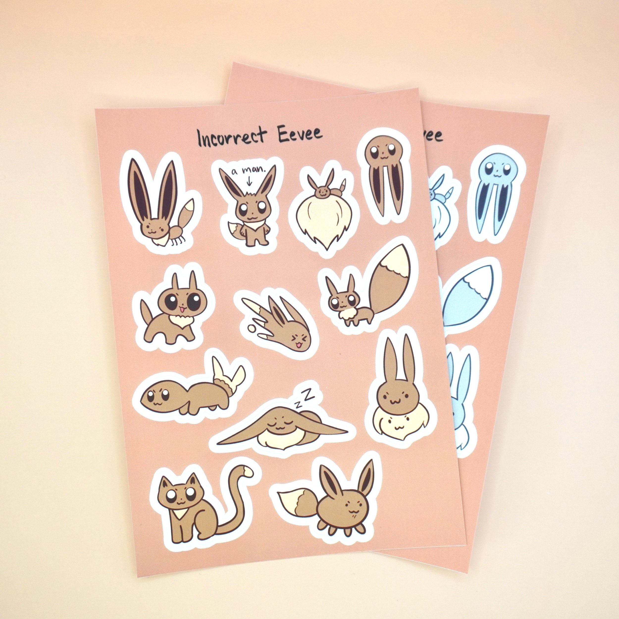 Shop › Incorrect Eevee Sticker Sheet Image 1 of 2 Image 2 of 2 Incorrect Eevee Sticker Sheet $10.00 ▲ 4×7” waterproof vinyl sticker sheet▲ 1 in 5 chance of receiving a shiny version! Add To Cart Added! ▲ 4×7” waterproof vinyl sticker sheet▲ 1 in 5 chance of receiving a shiny version!